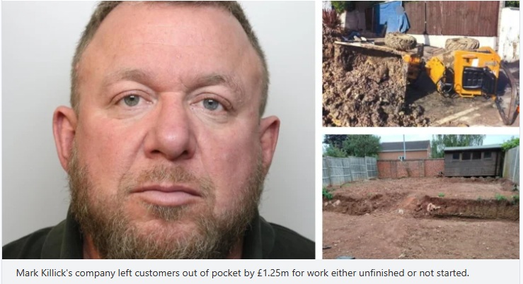 The jury were told during the 14-week trial at Bristol Crown Court that Killick would request customers pay large sums of money upfront to enable him to pay for orders or materials.