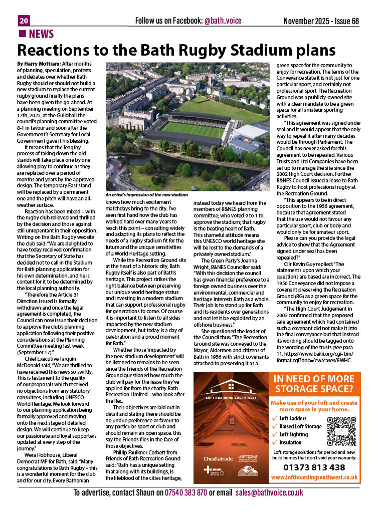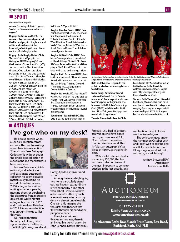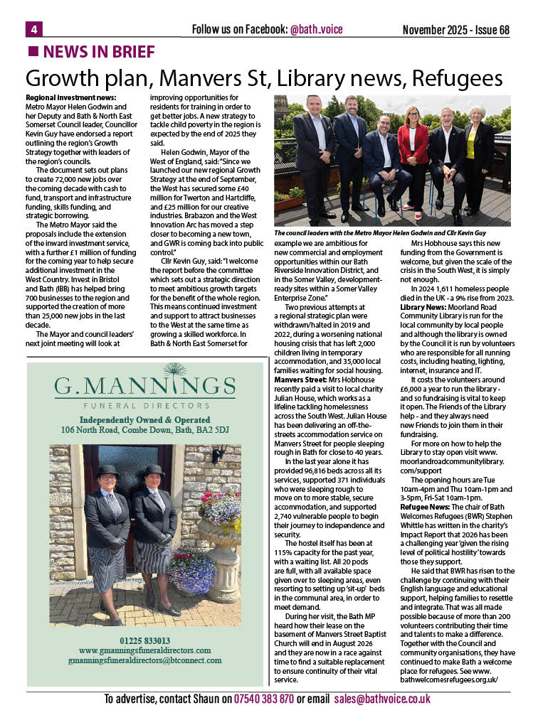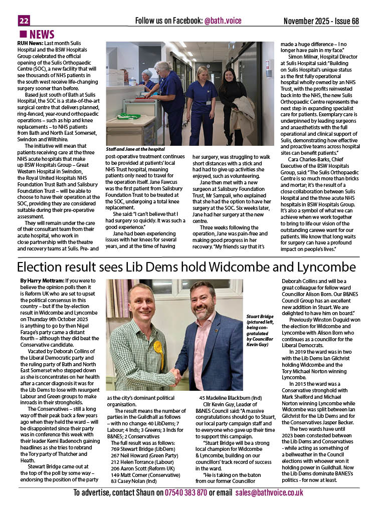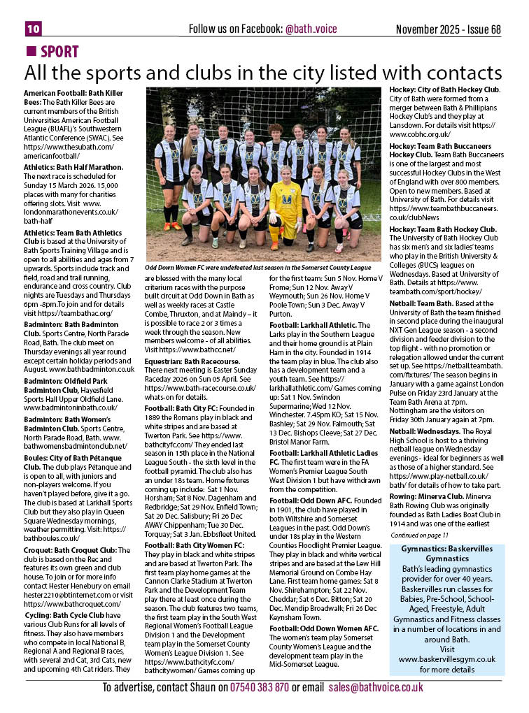 By Harry Mottram: Packed with news, views, features, previews, what’s on, sport and much more Bath Voice newspaper is out on November 1st and distributed to thousands of homes in the city.