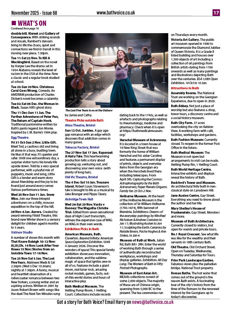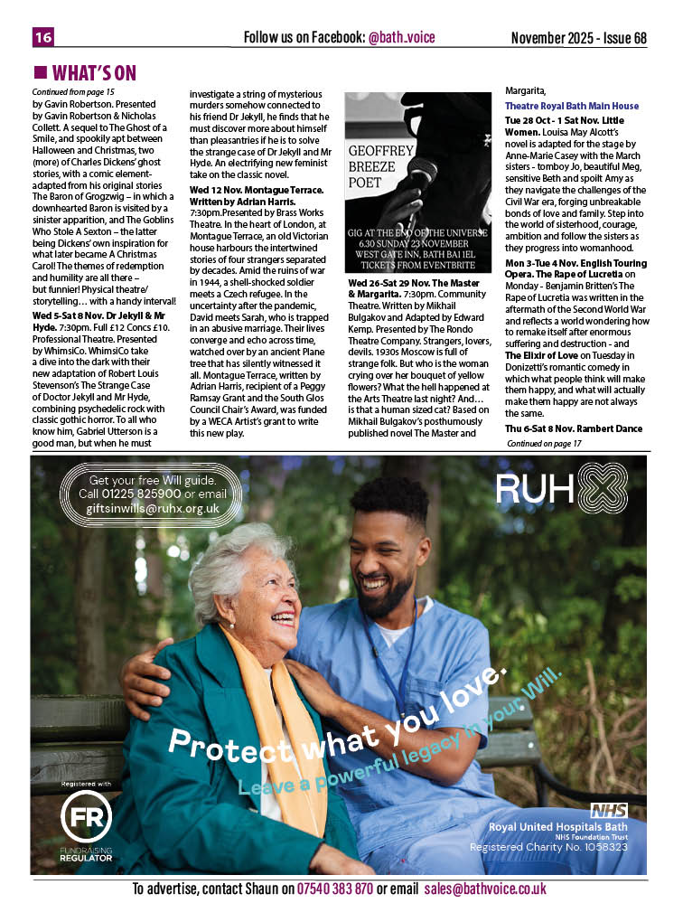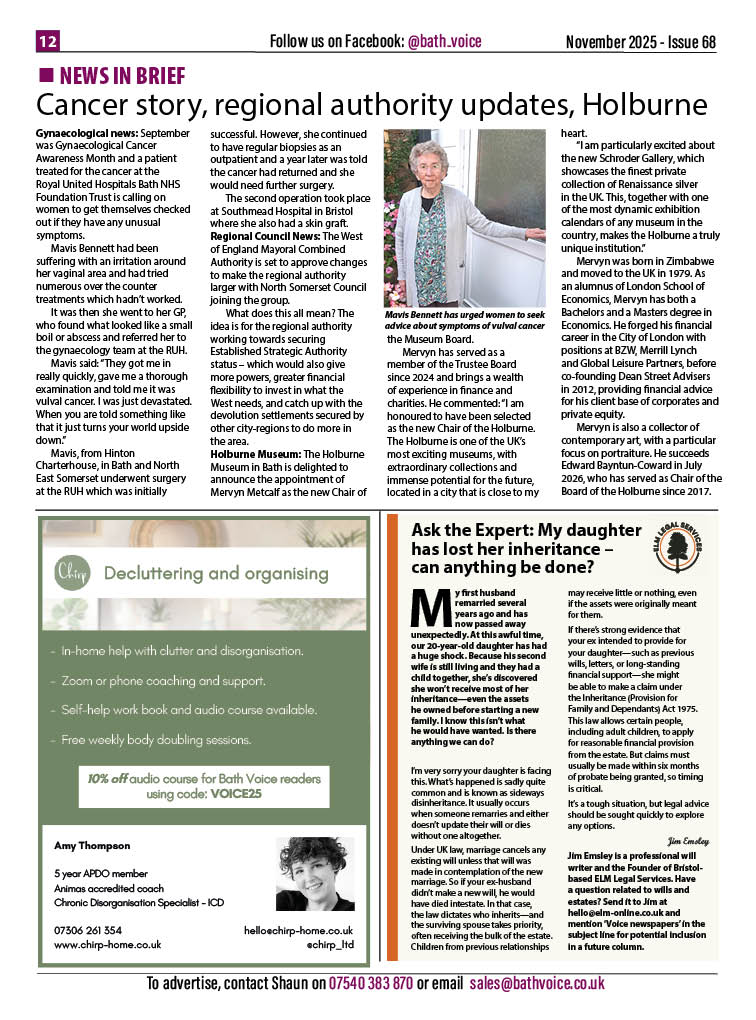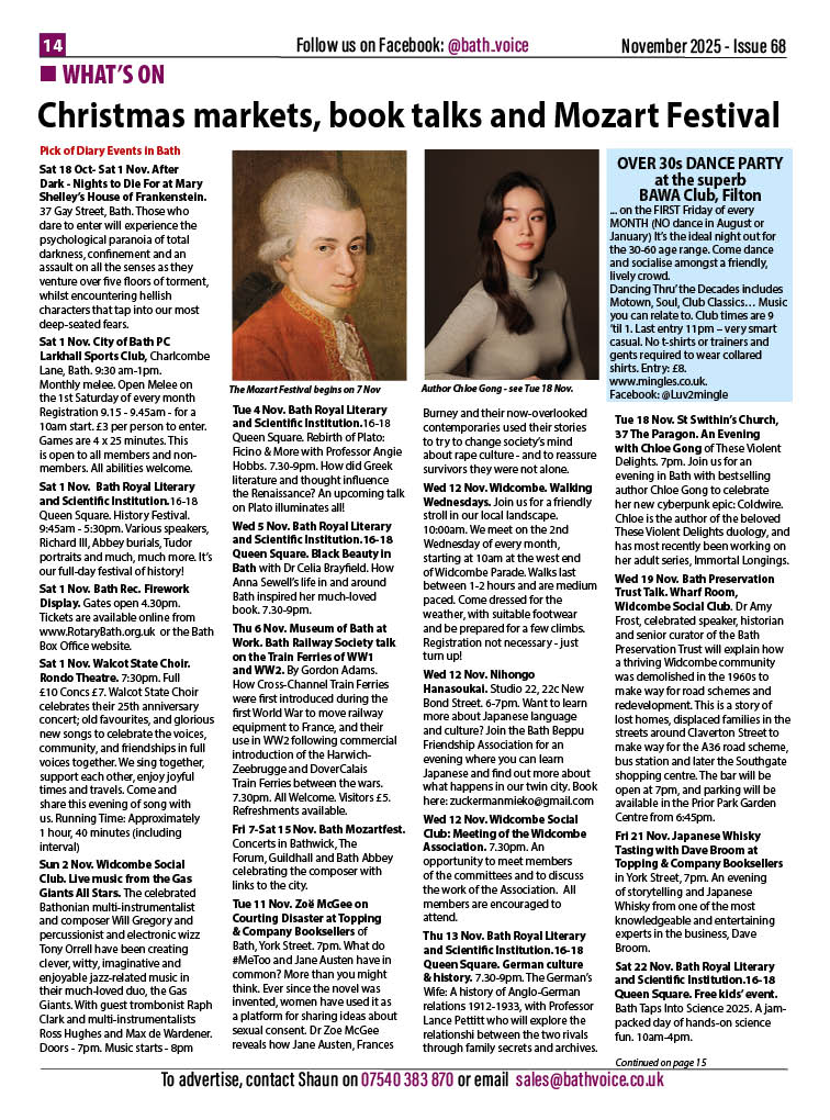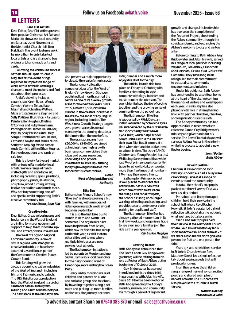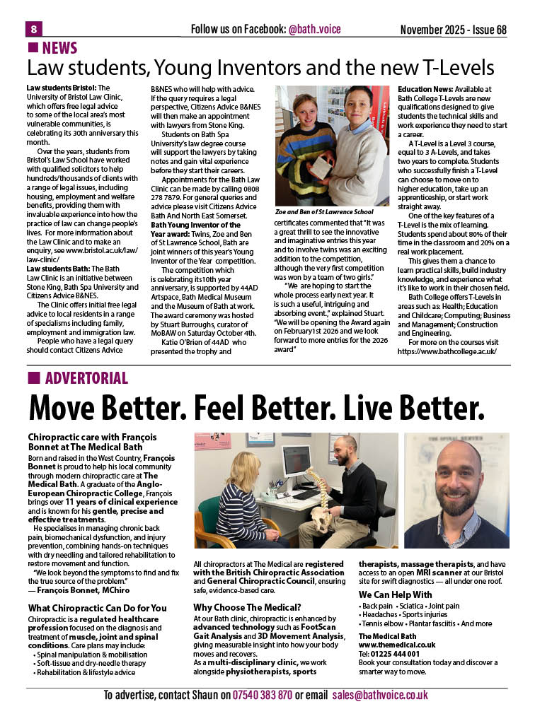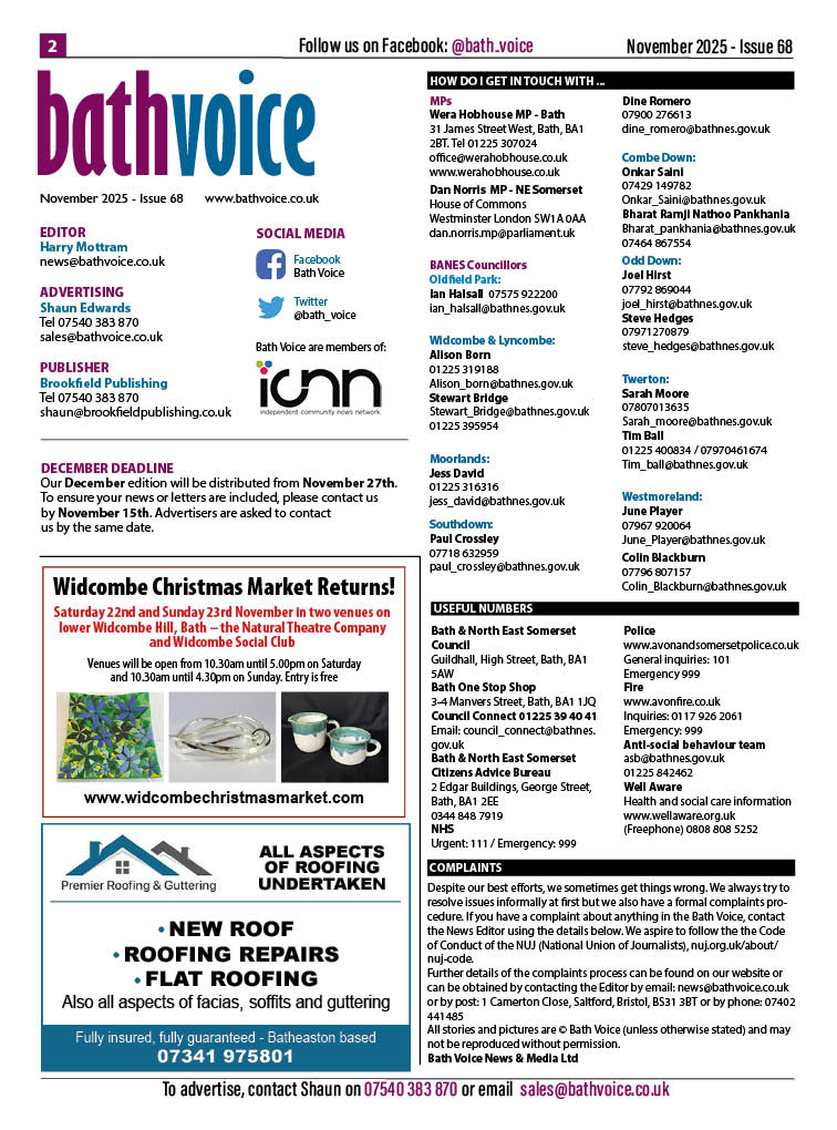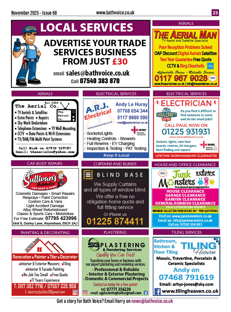 To advertise to thousands of Bathonians call Shaun on 07540 383870 or email him on sales@bathvoice.co.uk