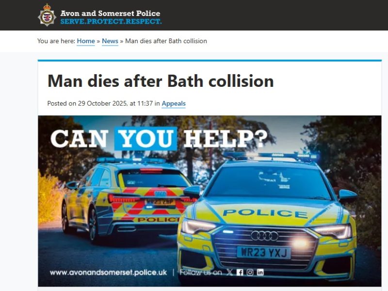 Dear Editor, On Saturday October 11th a pedestrian was hit by a motorcyclist in Widcombe, Bath. Tragically, they later died in hospital.