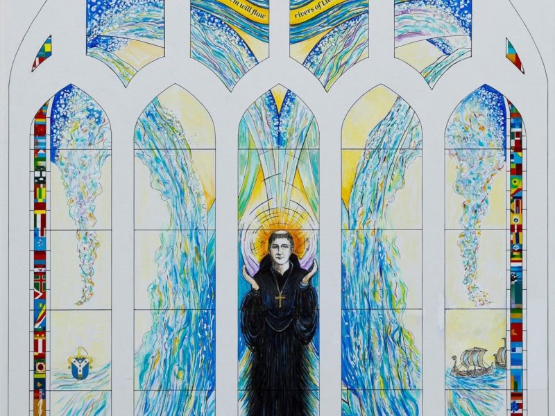 The new stained glass window will be situated in the Abbey’s Alphege Chapel, a sacred space where many of Bath Abbey’s thousands of international visitors seek sanctuary to pray for their loved ones, for the wider world, and for peace. Through Neil Ireson’s design, which includes a striking border that evokes international flags, the Saint Alphege Window will emphasise Bath Abbey’s commitment to being “A House of Prayer for all Nations” for the local and global community.