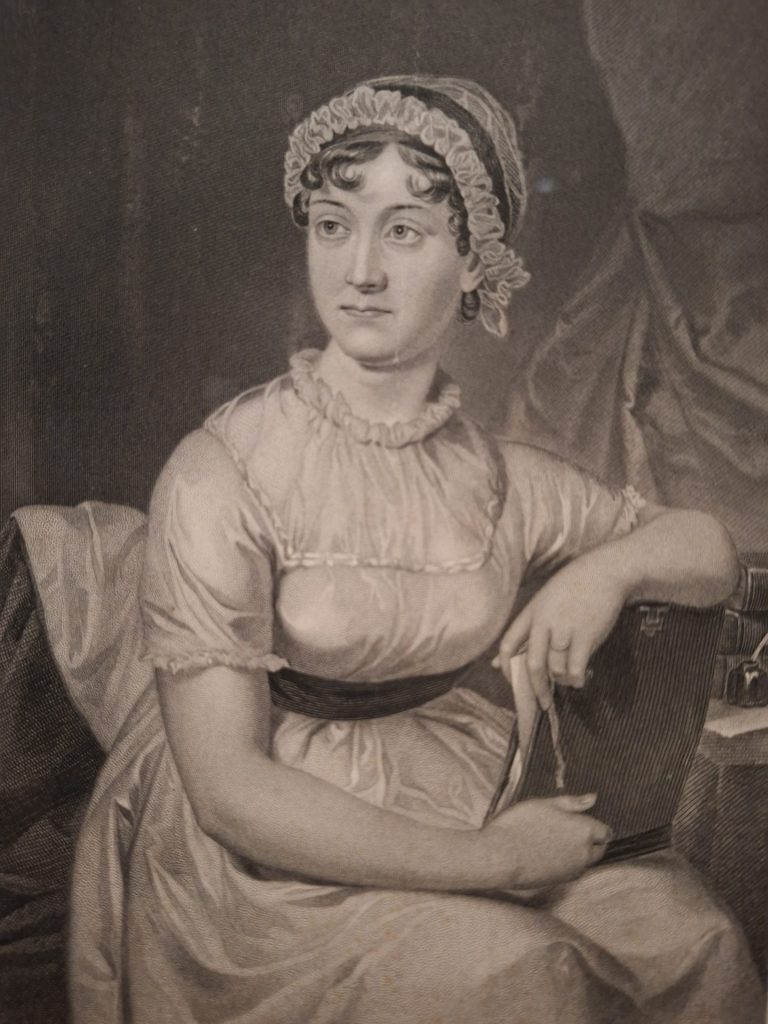 A visit to the Holburne Museum is always a pleasure with its café, clean toilets, gardens and gift shop – albeit with a 21st century admission of £16.50 (with discounts for students and young people). Apart from the views of Great Pulteney Street from the upper floors which are almost worth the entrance fee there is until the New Year a small but worth it exhibition on the illustrations of the books of Jane Austen’s novels. For Janeites and fans of all things Jane Austen this is essential viewing since some of the illustrations are so familiar having been published in various editions of her novels or appeared online in stories about her stories. The one that is most familiar is the one closest to the entrance – the portrait of Jane by her sister Casandra – a print of the original in the National Portrait gallery and the one that all depictions of the author are based on. There is something slightly sad about her expression – or maybe a touch of boredom as she had to sit still for ages for the artist to do her work.