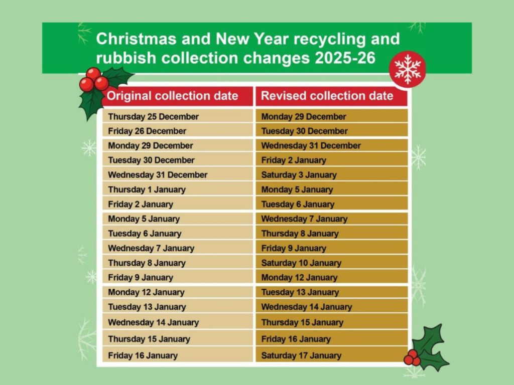 From the Council: Every household has been sent a leaflet advising them of changes to the recycling and rubbish collection dates and highlighting the outstanding 60% recycling rate achieved across the area, which has helped save 51,000 tonnes of waste – enough to pack Bath Abbey to its vaulted ceiling around 14 times. You can also check your collection dates online.