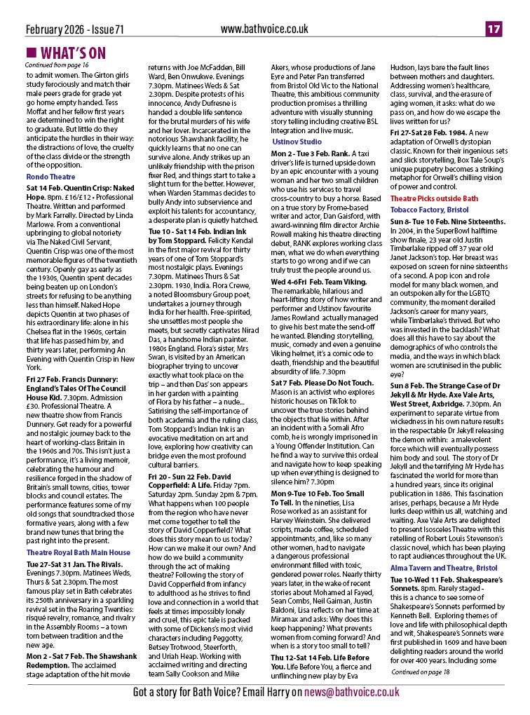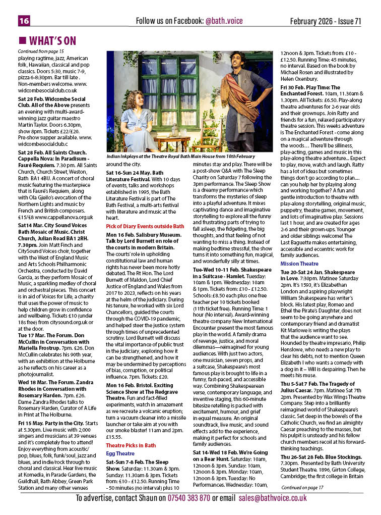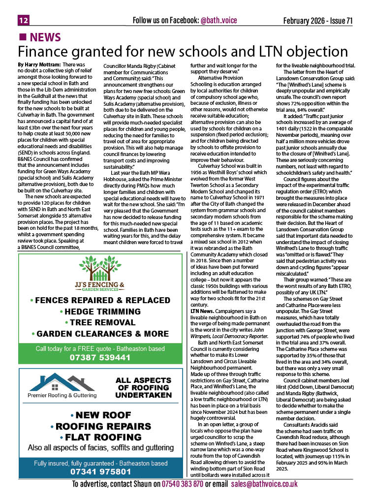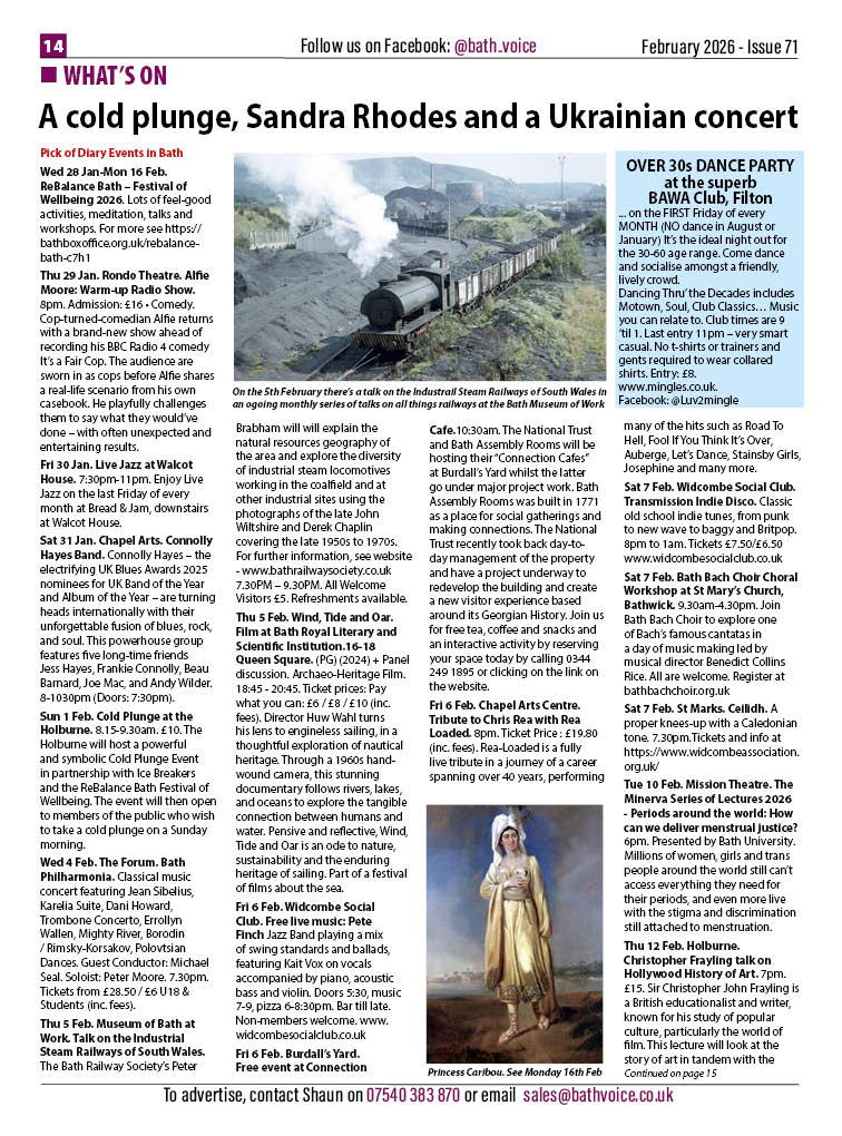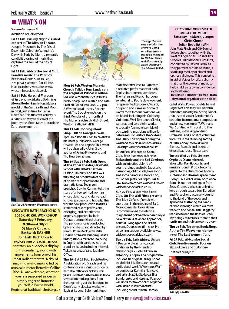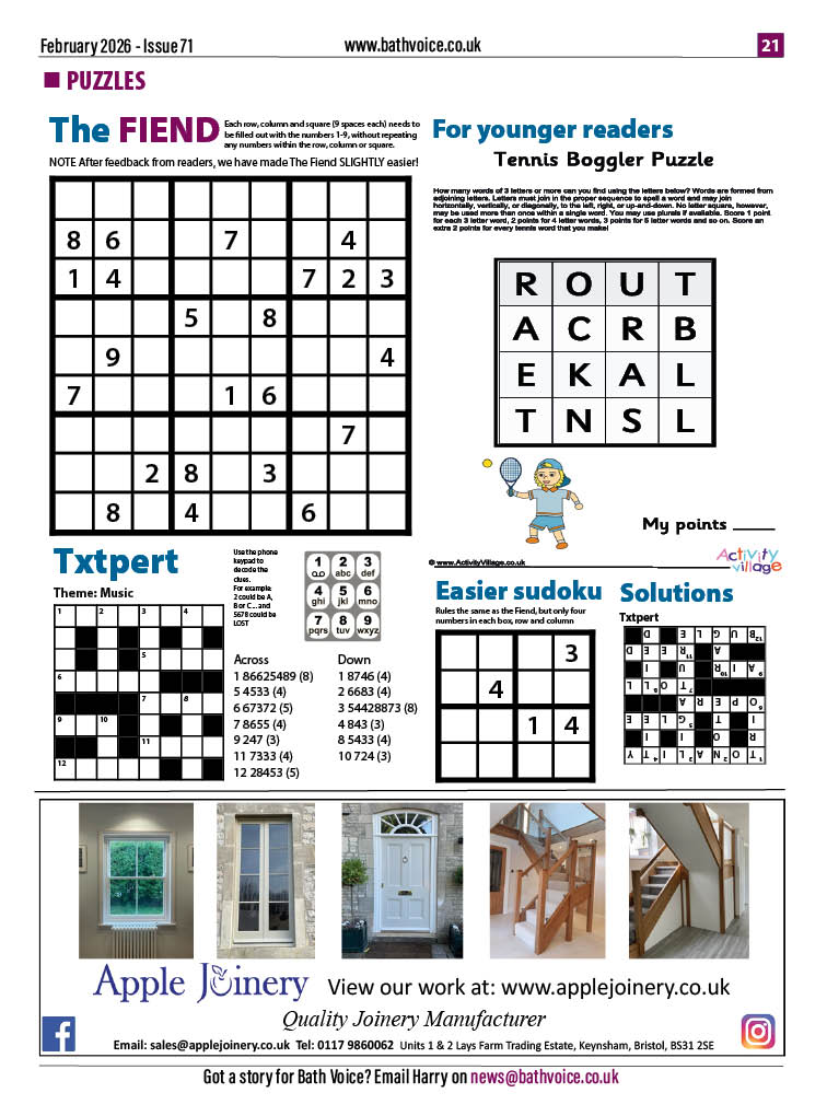 By Harry Mottram: The latest edition of Bath Voice – the city’s leading monthly newspaper is out now with features, letters, sport, what’s on, news and views – plus much more. It is free to thousands of homes in Bath and is available from selected outlets such as shops and libraries. On our website and social media we post regular news and sports results – on a daily basis – so ensure you follow Bath Voice online: