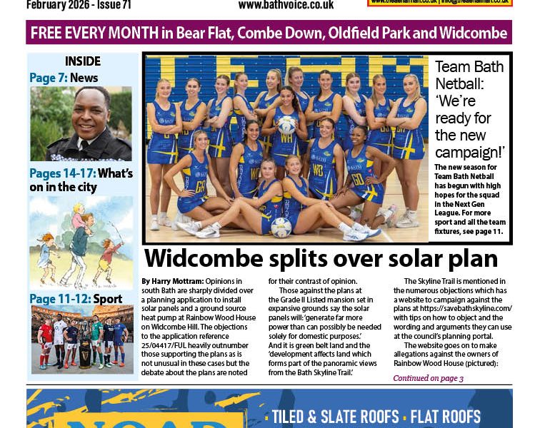 By Harry Mottram: The latest edition of Bath Voice – the city’s leading monthly newspaper is out now with features, letters, sport, what’s on, news and views – plus much more. It is free to thousands of homes in Bath and is available from selected outlets such as shops and libraries. On our website and social media we post regular news and sports results – on a daily basis – so ensure you follow Bath Voice online: