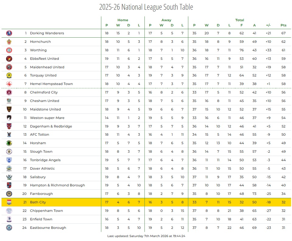 Full list of results and fixtures at: https://www.bathcityfc.com/2025-26-fixtures-results/