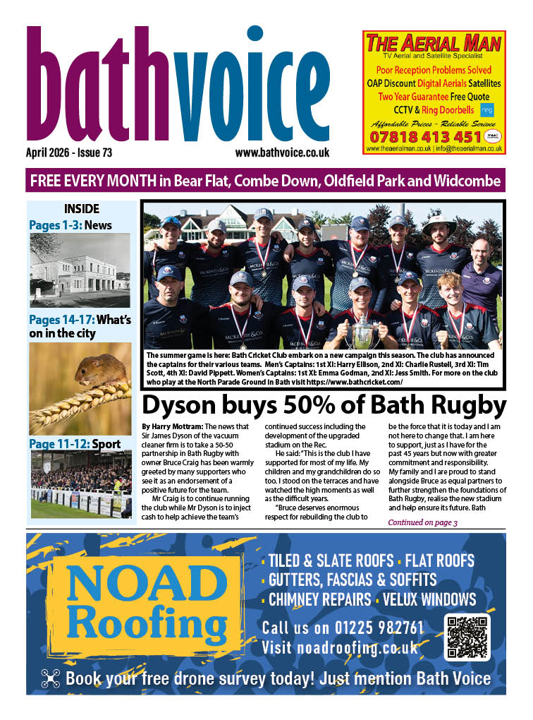 To advertise to thousands of Bathonians call Shaun on 07540 383870 or email him on sales@bathvoice.co.uk