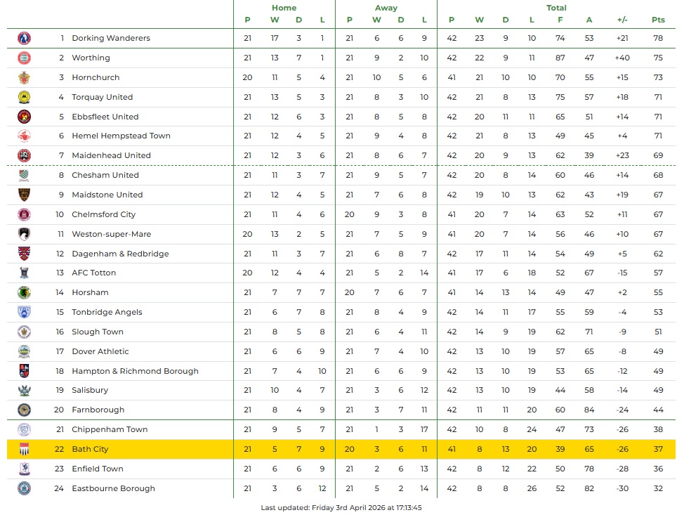 Full list of results and fixtures at: https://www.bathcityfc.com/2025-26-fixtures-results/