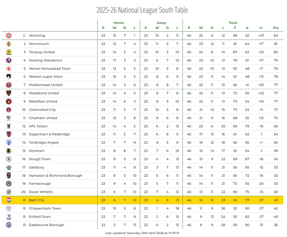 Full list of results at: https://www.bathcityfc.com/2025-26-fixtures-results/